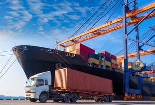 Pengangkutan barang menggunakan kombinasi moda transportasi yang terintegrasi dalam satu sistem.